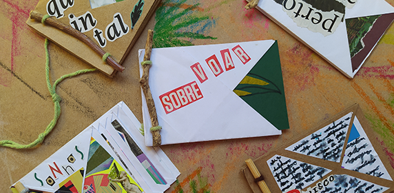 Entre envelopes, dobraduras e colagens, as pessoas são incentivadas a confeccionar histórias autorais escritas, desenhadas, contadas e encadernadas artesanalmente. Nessa oficina, os artistas visuais de São Paulo produzem e compartilham livros e criações poéticas, direcionando o olhar do público para o mundo e para as memórias.