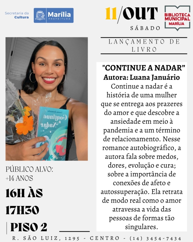 O programa “Janela Literária” é um dia dedicado às diversas manifestações artísticas e literárias como lançamentos de livros, saraus, contação de histórias, oficinas, jogos, encontro de escritores marilienses e de Clubes de Leitura. O Janela Literária ocorre em dois sábados ao mês, com programação no período da TARDE. As atividades são todas gratuitas.