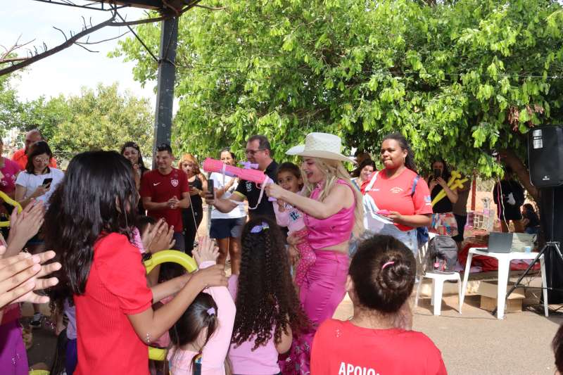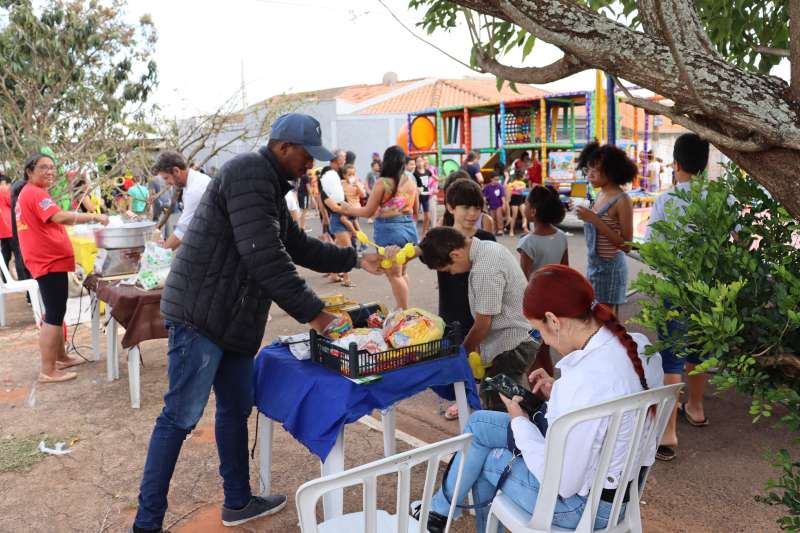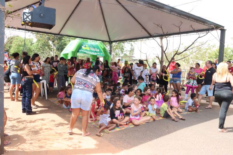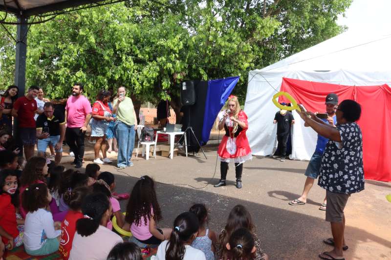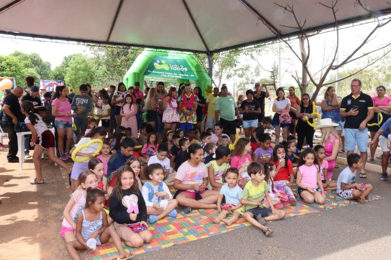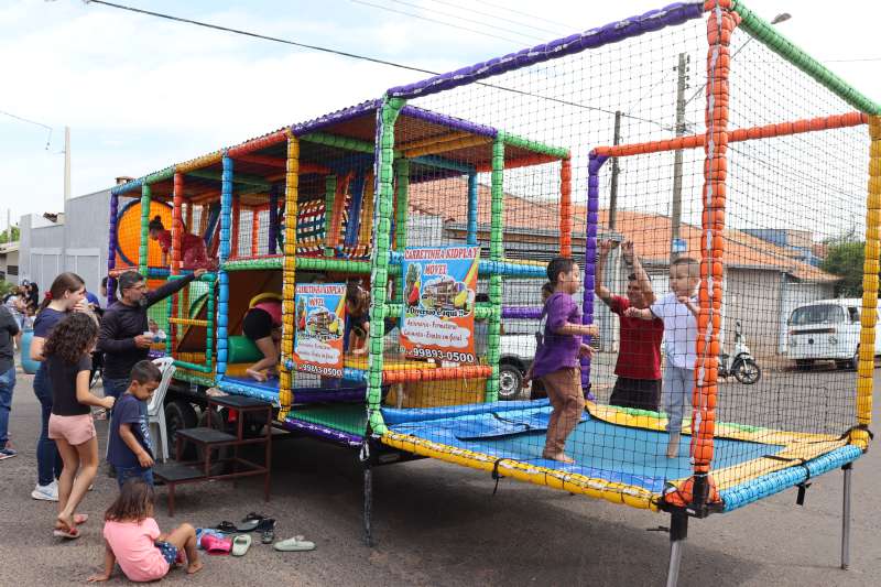 A criançada ainda se divertiu muito com os brinquedos infláveis, pula-pula e piscina de bolinhas.