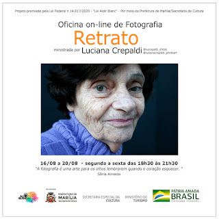 “A fotografia é uma arte para os olhos lembrarem quando o coração esquecer.“ Sônia Almeida. A oficina de Fotografia de Retrato aspira instigar o participante a conhecer e produzir uma série de atraentes retratos buscando desvendar a personalidade e a singularidade, a beleza do gesto e da expressão intrínseca em cada pessoa.