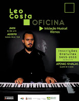 O músico Leo Costa, em parceria com a Secretaria Municipal da Cultura, realizará a Oficina de Iniciação Musical: Ritmos. O projeto tem por objetivo apresentar o Ritmo, um dos principais fundamentos da música, a pessoas sem conhecimento musical prévio.