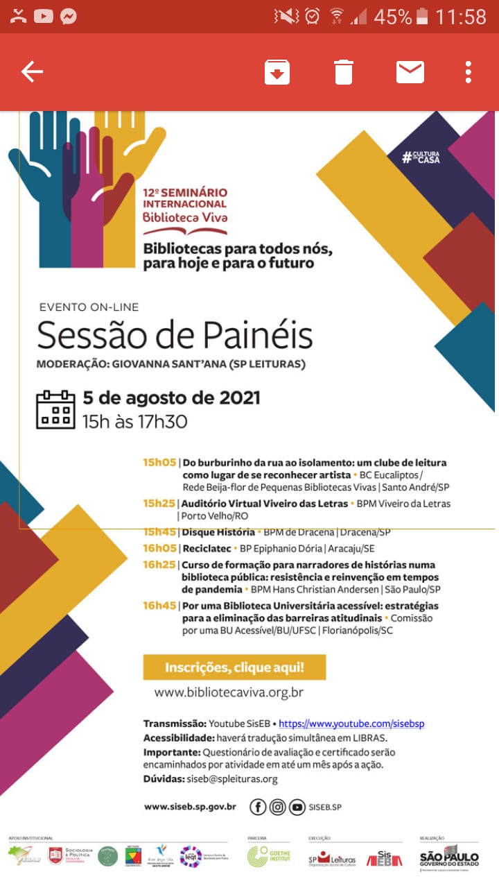 Para quem vai apenas assistir ao Sarau, as inscrições poderão ser feitas de 19/07 a 05/08/2021 por meio do preenchimento deste formulário: