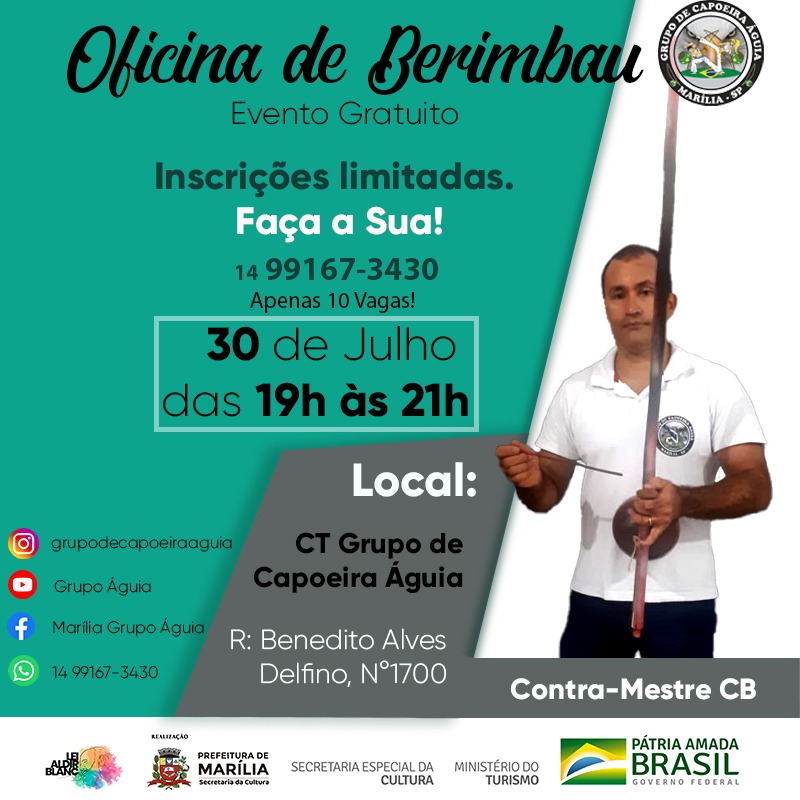 Local: CT do Grupo de Capoeira Águia - Rua Benedito Alves Delfino n°1700.