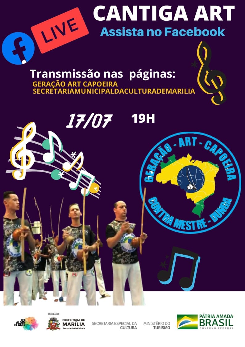 A transmissão será feita pelas páginas do Facebook da Geração Art Capoeira e da Secretaria Municipal da Cultura de Marília.