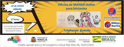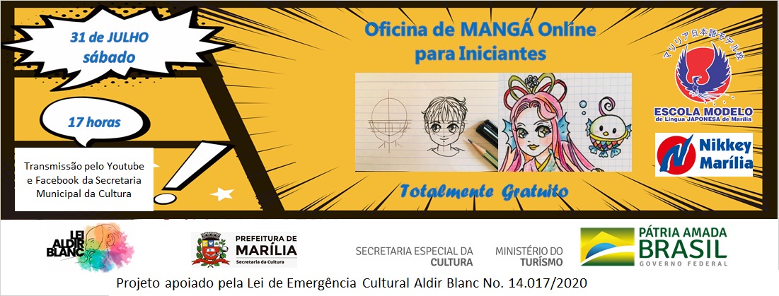 A Escola Modelo de Língua Japonesa do Nikkey Marilia-SP, traz no formato online uma oficina de mangá (Histórias em Quadrinhos de origem japonesa) para iniciantes. Será transmitido pelo Youtube e Facebook da Secretaria Municipal da Cultura.