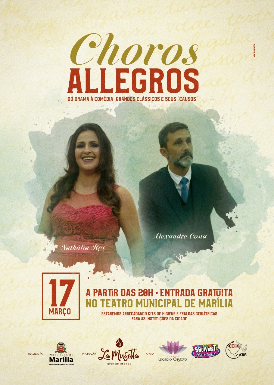 Recital de canto e piano com produção inteiramente mariliense, apresentando peças clássicas de grande relevância histórica e popular, desde chorinhos até famosas árias de óperas italianas, francesas e norte-americanas, como Carmen de Bizet, La Boheme de Puccini, Porgy and Bess de Gershwin, entre outras surpresas.