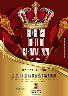 A Secretaria Municipal da Cultura está com inscrições abertas para os interessados em participar do concurso que escolherá o rei momo, rainha, rainha da diversidade e princesa do Carnaval 2020 em Marília.