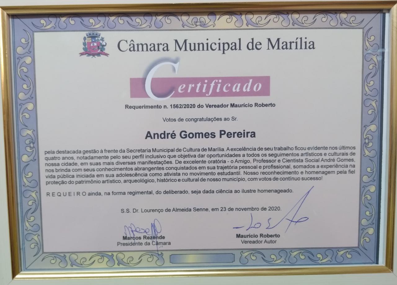 O requerimento nº 1562/2020, de autoria do vereador Maurício destacou a excelência da administração do secretário frente à pasta da Cultura, com perfil inclusivo, que objetiva a oportunidade a todos os seguimentos artísticos e culturais em Marília.
