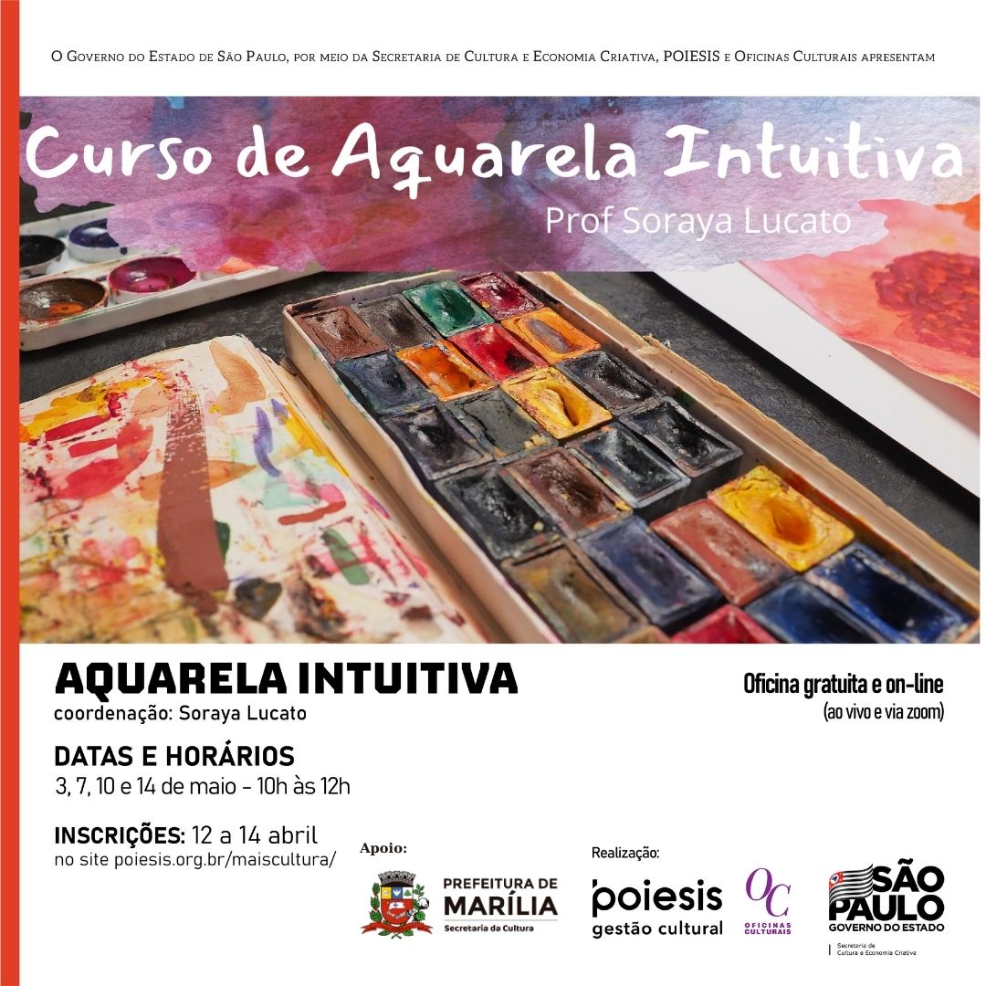 O Curso Aquarela Intuitiva é um curso interativo que dá ferramentas para que pessoas de várias áreas possam usar a aquarela tanto como ferramenta expressiva quanto como meio de aplicar a artesanatos e artefatos para produzir elementos para seu sustento. São 4 encontros de 2h cada onde os participantes aprenderão técnicas de uso de aquarela, bem como a história desse material e artistas que usaram aquarela como meio de trabalho.
