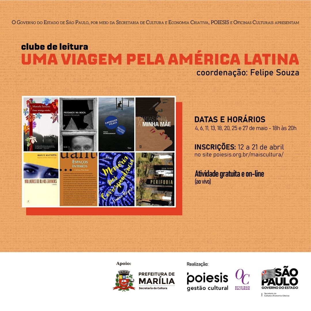 Clube de leitura focado na literatura latino-americana contemporânea. Cada encontro será destinado à discussão de um livro de um país, de modo a realizar um tour literário por países da América Latina. Na seleção de livros, foram priorizadas narrativas curtas (contos ou cartas) de autorias menos inseridas no que comumente se chama de “cânone literário”. Além da discussão dos livros, em cada encontro haverá um panorama da produção literária contemporânea em cada país, de modo a apresentar outras obras e autores.