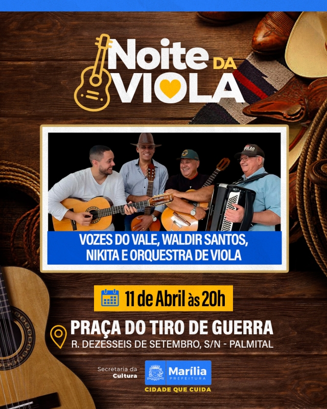 A “Noite da Viola” integra o calendário cultural de Marília e reforça o compromisso da administração municipal em fomentar a cultura local e manter vivas as tradições musicais do interior paulista.