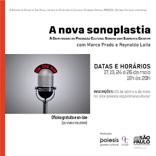 Oficina desenvolvida com foco na aprendizagem da nova Sonoplastia na prática: Podcasts Culturais, Vinhetas, Chamadas, Comerciais, Criação de Efeitos Sonoros, Trilhas Sonoras para vários gêneros utilizando tecnologia contemporânea, que possuímos em casa.