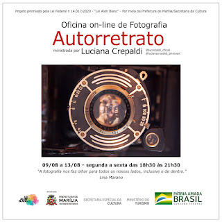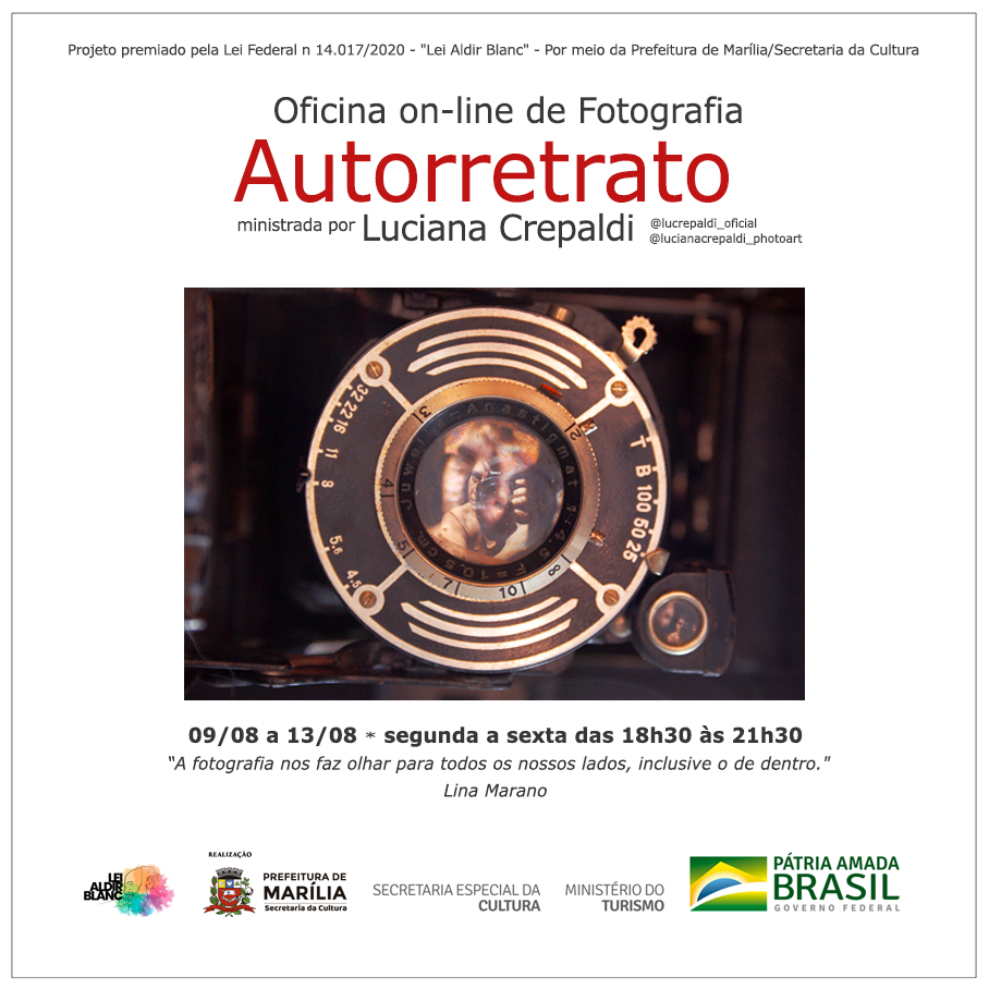 A Secretaria Municipal da Cultura e a artista e arte-educadora Luciana Crepaldi, por meio de premiação da Lei Federal nº 14.017/2020 - "Lei Aldir Blanc", abrem as inscrições para o Ciclo de Oficinas de Fotografia, que acontecerá nos meses de agosto e setembro.