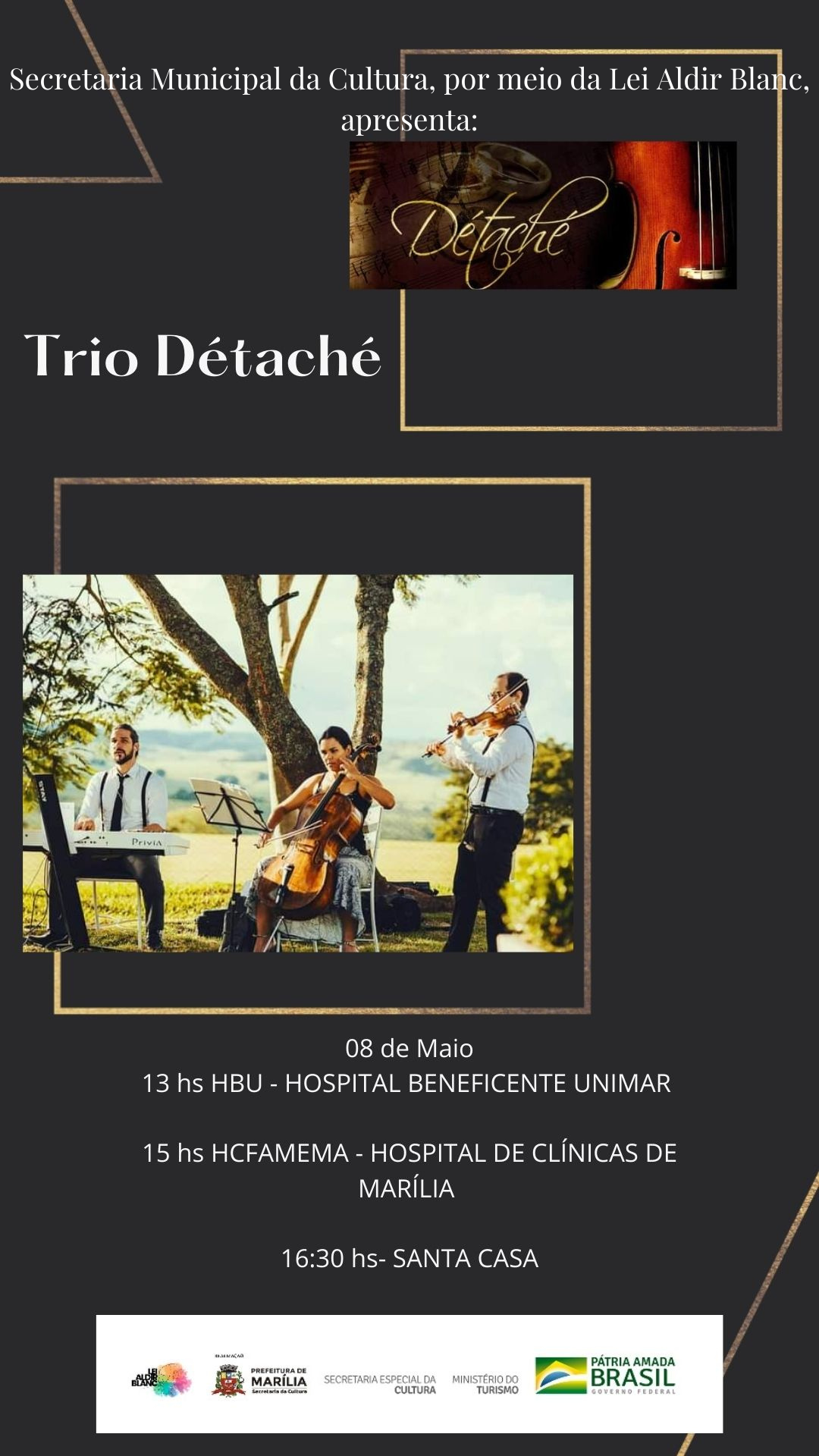 Neste sábado, 08 de maio, o Trio Détaché realizará apresentação musical especial